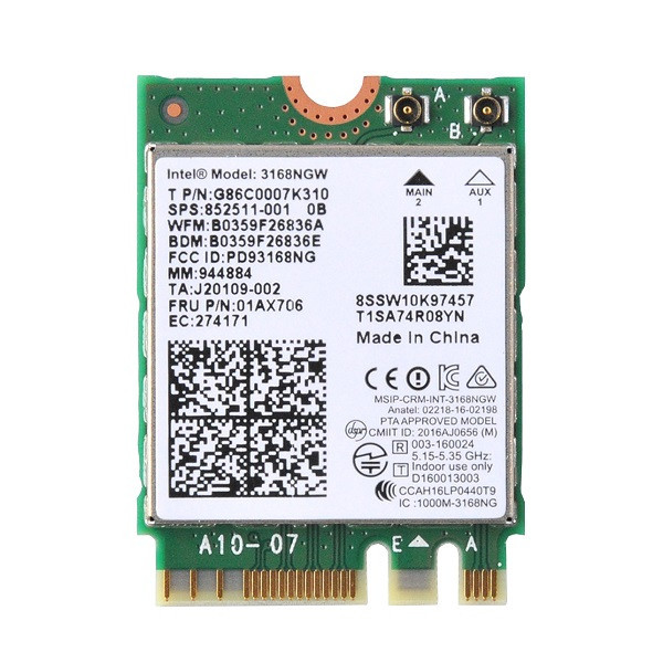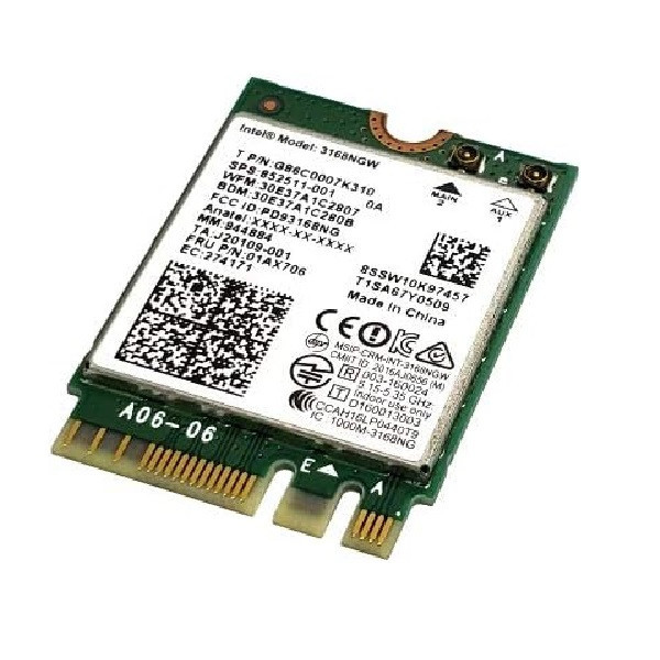 کارت شبکه وایرلس AC از برند پر اعتبار Intel و مدل 3168NGW است که جهت اتصال به انواع شبکههای وایرلس و شبکه سازی در انواع کامپیوترها، مینی کامپیوترها و لپتاپها کاربرد دارد. بیشترین مورد استفاده این محصول در کامپیوترهای PC است که نیاز دارند به وایفای، بلوتوث یا هر شبکه وایرلس دیگر متصل شوند. این کارت شبکه Dual Band بوده از طرفی افزایش سرعت انتقال داده در این مدل باعث می شود شما بتوانید بدون قطعی و کندی در آن واحد به هر دو شبکه بلوتوث و وایفای وصل شوید. سرعت انتقال داده در این مدل 433 مگابیت بر ثانیه است.