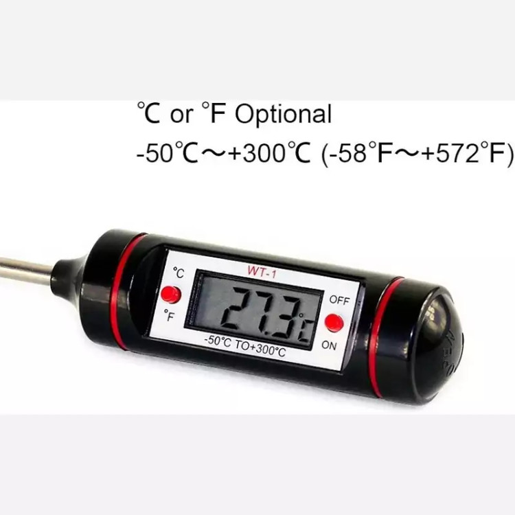 دماسنج خودکاری WT-1 دامنه اندازهگیری : -50 تا + 300 درجه سانتی گراد دقت : ±1°C وضوح دما: 0.1± درجه سانتیگراد تنظیم واحد اندازه گیری ℃/℉ جنس میله: استیل 304 دارای قاب محافظ خودکاری