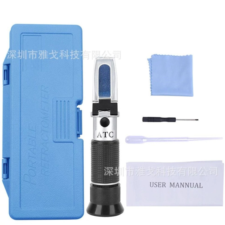 رفراکتومتر دوکاره داری درجه بندی Brix و سنجش الکل دامنه اندازه گیری بریکس 0 تا 40 دامنه اندازه گیری پتانسیل الکل 0 تا25 دارای پیچ کالیبره