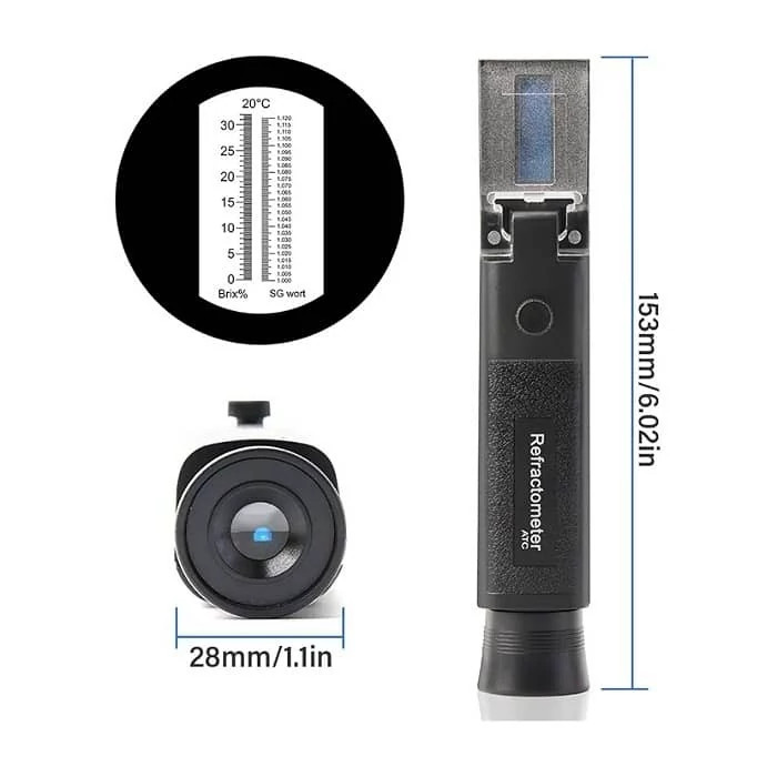 رفراکتومتر دوکاره بریکس وSG داری درجه بندی Brix وSG دامنه اندازه گیری 0 تا 32 بریکس دامنه اندازه گیری 1.000 تا 1.120 SG دارای پیچ کالیبره