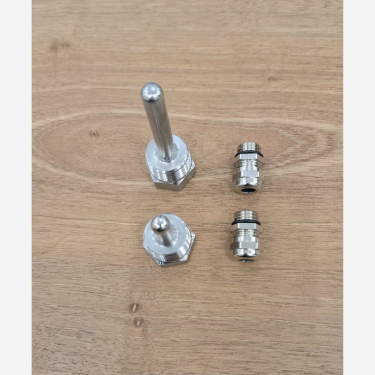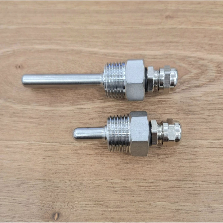 غلاف سنسور دمای آب وگاز استیل ضدزنگ جنس غلاف : استیل 304 جنس گلند : برنج آبکاری شده طول میله غلاف : 20 و 50 میلی متر