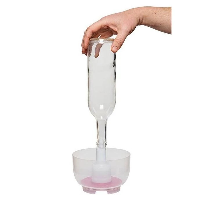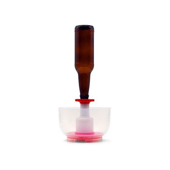 این دستگاه داری یک پمپ فشاری ومخزن مایع ضدعفونی کننده بوده که بافشاردادن پمپ، مایع ضدعفونی کننده به داخل بطری پمپاژ می شود وباعث سهولت وسرعت عمل در ضدعفونی کردن بطری وظروف می شود