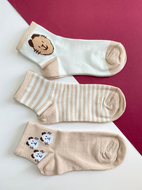 پک سه عددی جوراب نیم ساق زنانه در سه طرح متنوع مطابق تصویر جنس نخ پنبه رنگ کرم
