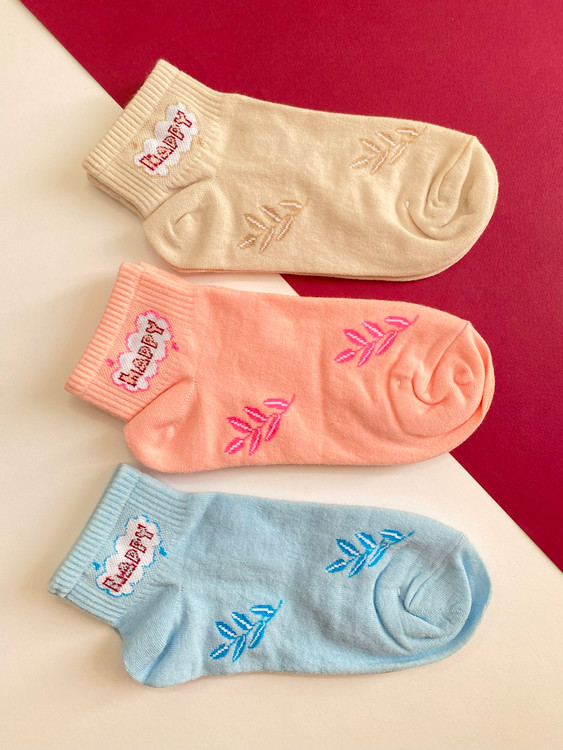 جوراب نیم ساق زنانه طرح برگ پک سه عددی