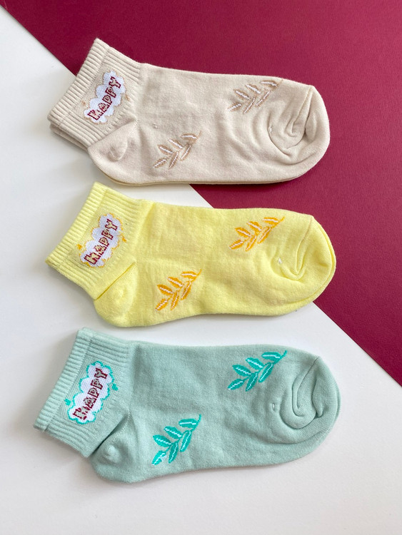 جوراب نیم ساق زنانه طرح برگ پک سه عددی