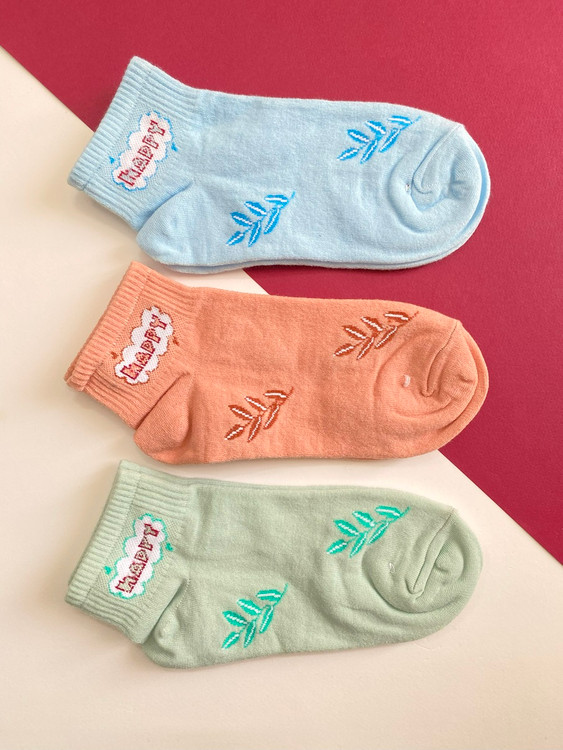 جوراب نیم ساق زنانه طرح برگ پک سه عددی
